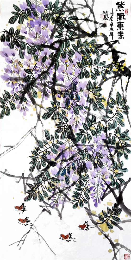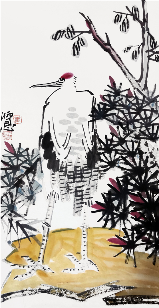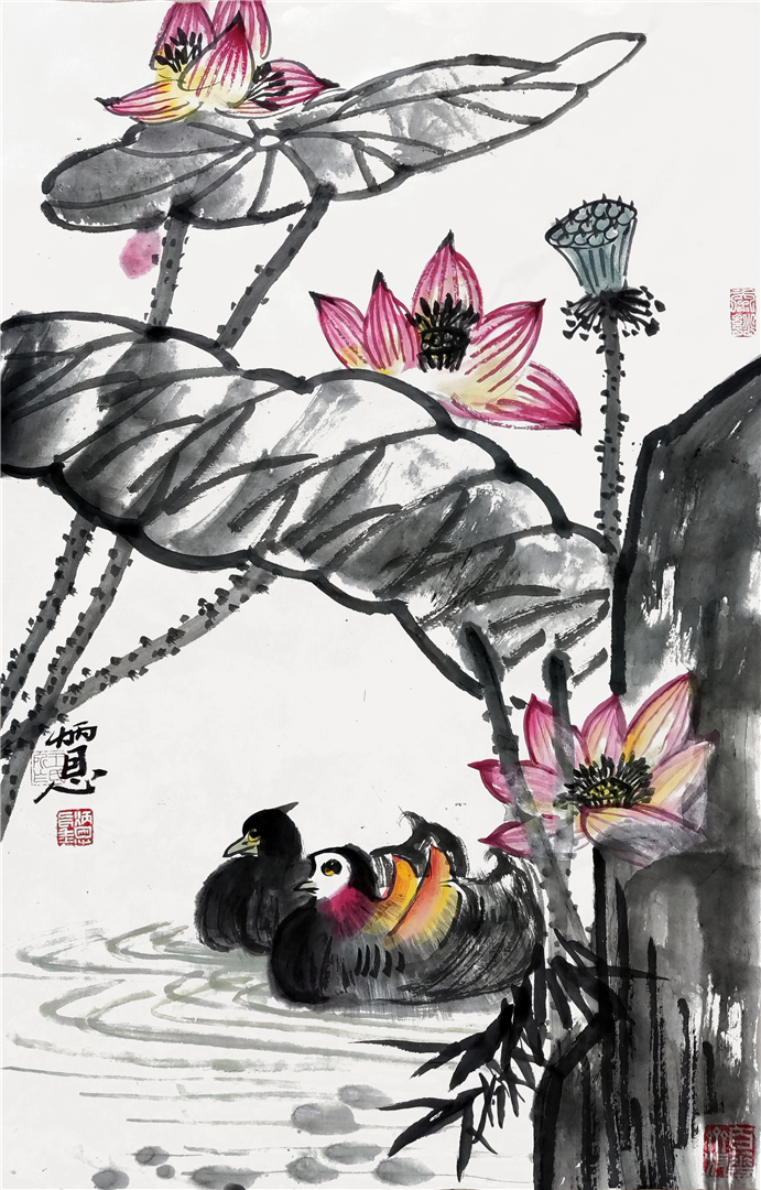 其画风自成一格,既有传统笔墨功底,又有质朴生活感情,富有哲思灵气,充满力量与生命!